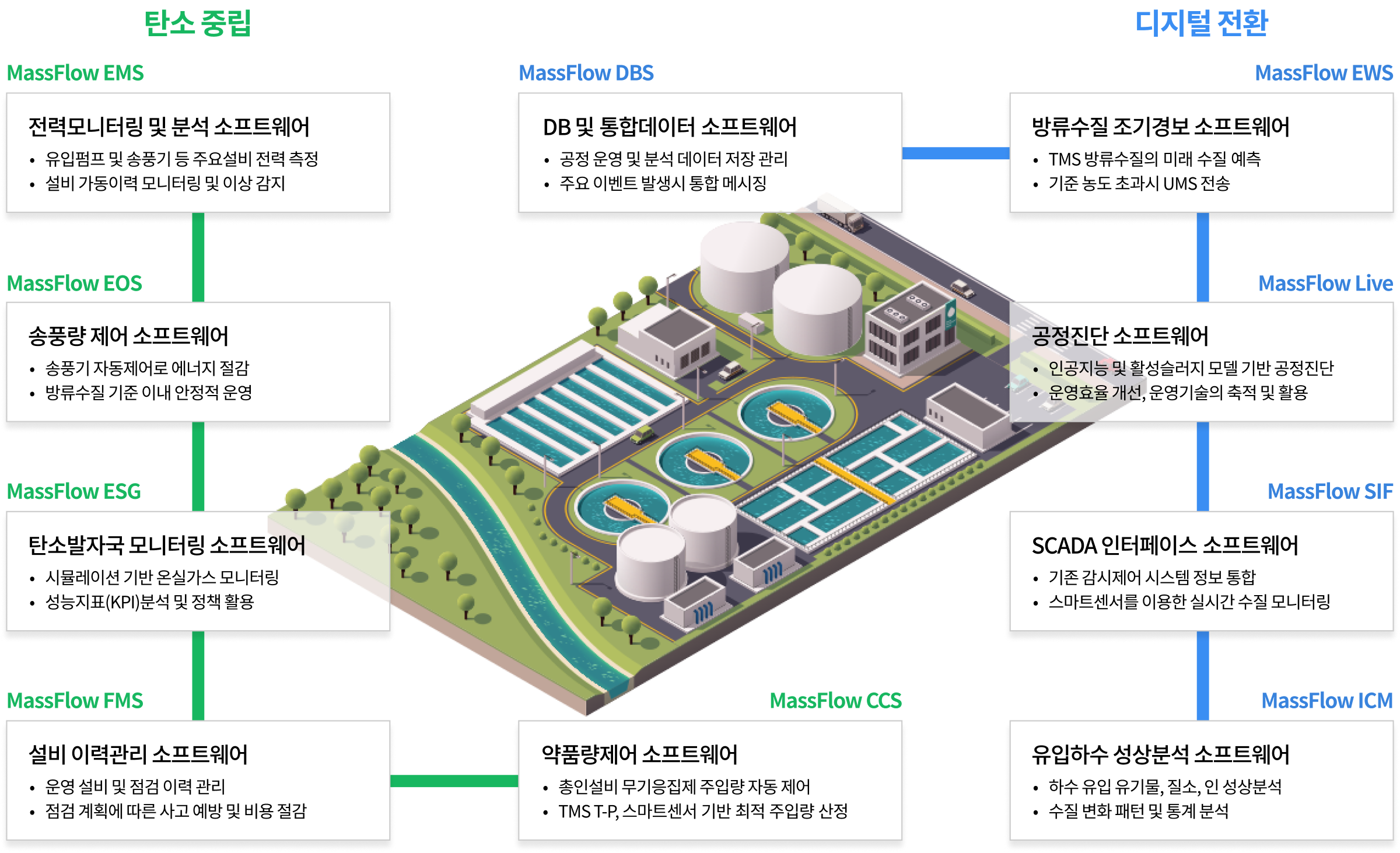 MassFlow CCS(Coagulant Control System) 는 하폐수 처리공정 총인시설에서 무기응집제를 제어하는 시스템 입니다. 과도한 약품 사용량을 절감하고, 필요시 약품 주입량을 증가시켜 상시 안정적인 처리수질을 유지하도록 도와드립니다.