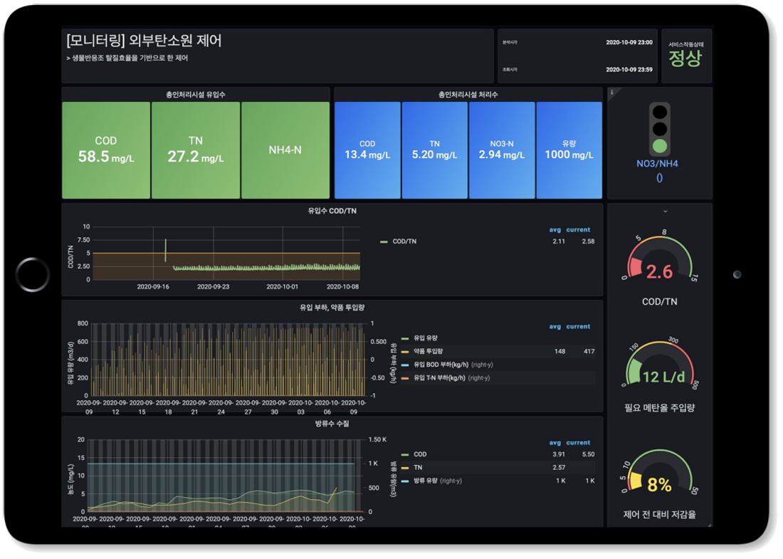 - 방류수 수질 예측 오차율 : 5% 이내 달성(총질소 기준)