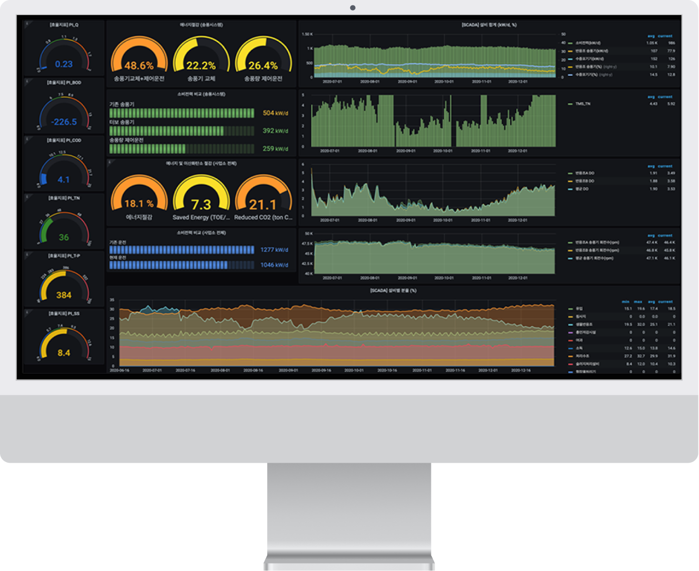 - 유입부하 및 처리수질 상태를 분석하여 송풍량 최적 제어